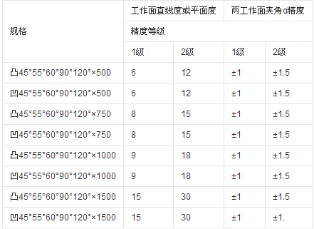 角度平尺分為凸、凹兩種形式。常用規(guī)格為:500凹 500凸 750凹 750凸 1000凹 1000凸 1500凹 1500凸。角度為:45度、50度、55度、60度?,F(xiàn)在用戶使用中主要以55度較為普遍.